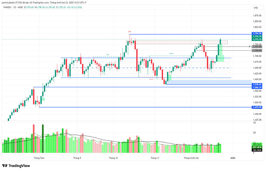- Kháng cự: 1.780 – 1.800 điểm (Vùng tâm lý lịch sử).