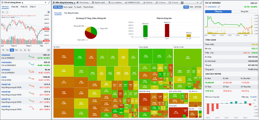 Ngày 02/12/2024, thị trường chứng khoán Việt Nam chứng kiến sự giằng co giữa bên mua và bên bán tại ngưỡng kháng cự 1,260. VN-Index mở cửa tăng mạnh nhưng áp lực chốt lời tại vùng kháng cự đã khiến chỉ số lùi về 1,251.21 điểm, chỉ tăng nhẹ 0.75 điểm so với phiên trước đó. Thanh khoản giảm mạnh, đạt 9,482 tỷ đồng, giảm 17.63% so với phiên trước.
