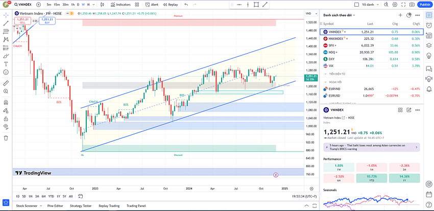 - Ngưỡng kháng cự quan trọng tại 1,265 điểm, cần lưu ý rủi ro rung lắc.